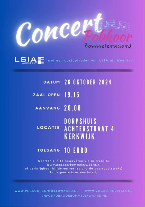 Wij zijn Zangvereniging Pobkoor Bommelerwaard (voorheen O.B.K. Kerkwijk).Ons POBKoor een gemengd koor voor jong en oud met een breed repe......