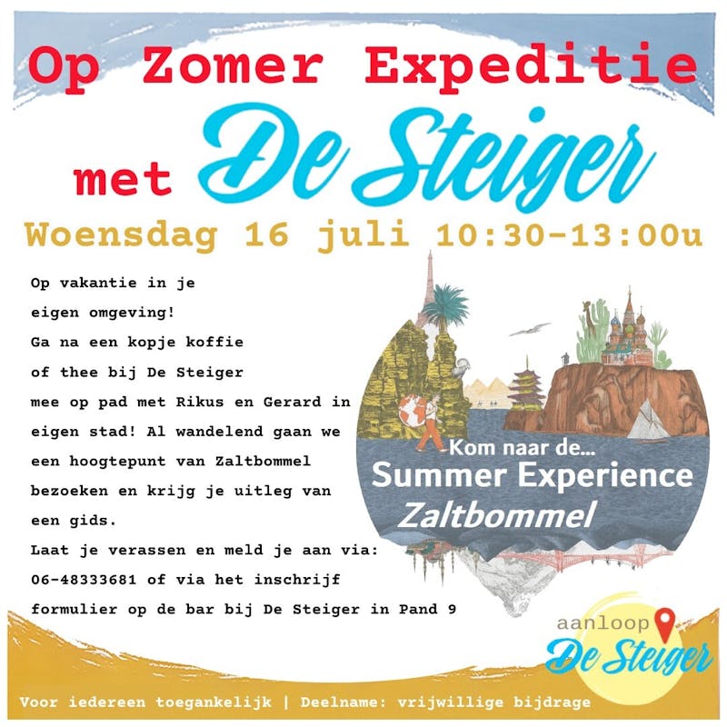 Ga deze zomer op ontdekkingstocht in eigen stad! Met buurtgenoten en onze vrijwilligers Rikus en Gerard, bezoek je een hoogtepunt van Zaltbommel en krijg je uitleg van een gids.