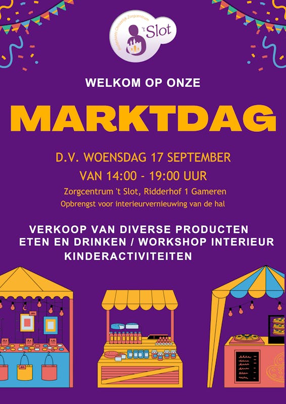Woensdag 17 september D.V. is er Marktdag bij Zorgcentrum ’t Slot in Gameren.