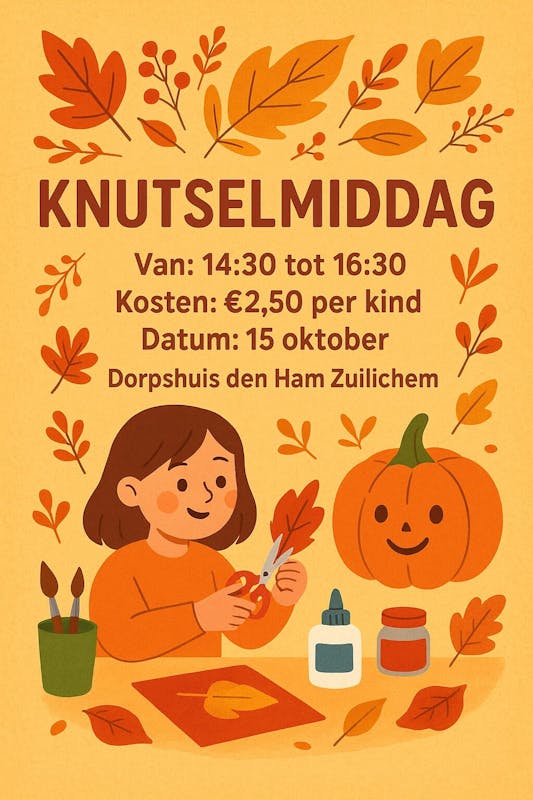 Knutsel middag in dorpshuis Den Ham, in de herfstvakantie gaan we knutselen, dit keer willen we etuis gaan maken. Kosten 2,50 p.e. inloop is vrij, iedereen is welkom.