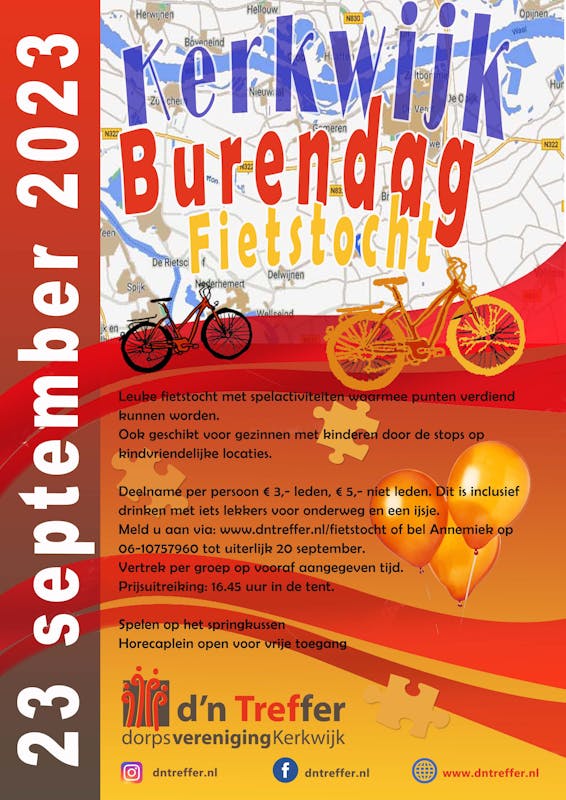 Op zaterdag 23 september organiseren wij een Burendag Fietstocht.