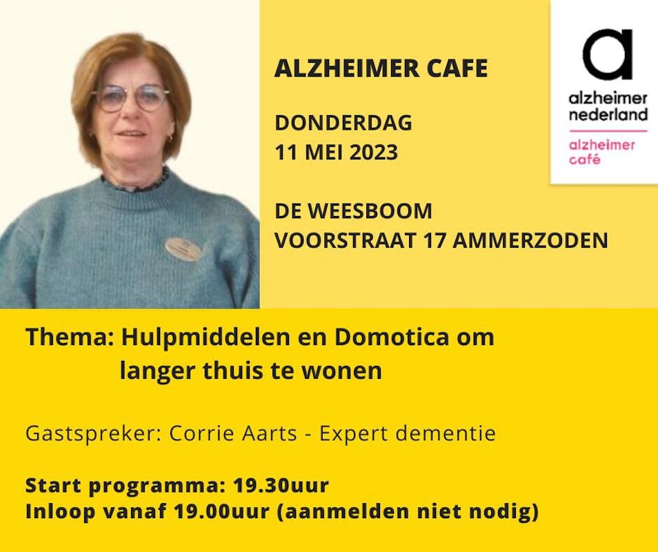 Het Alzheimer Café is een maandelijkse bijeenkomst voor mensen met dementie, hun naasten en belangstellenden. Elke maand kunnen bezoekers in een ontspannen sfeer, in alle openheid met elkaar praten over een leven met dementie onder leiding van een deskundige gespreksleider.