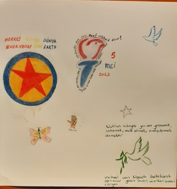 In de Ring tekende we symbolen van Vrijheid en een verwijzing naar het verhaal van Noach in de Koran.