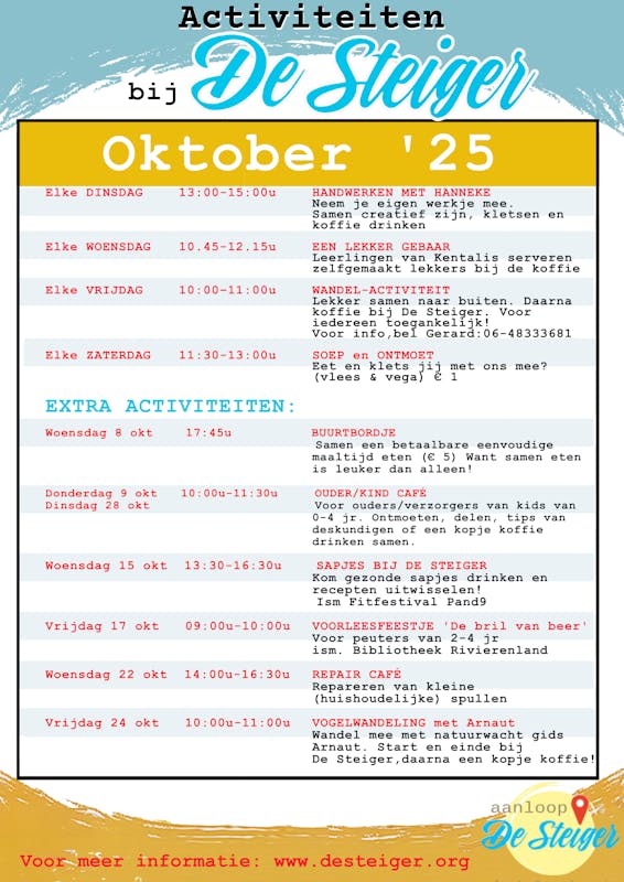 Naast onze wekelijkse activiteiten is ook in oktober weer van alles georganiseerd.