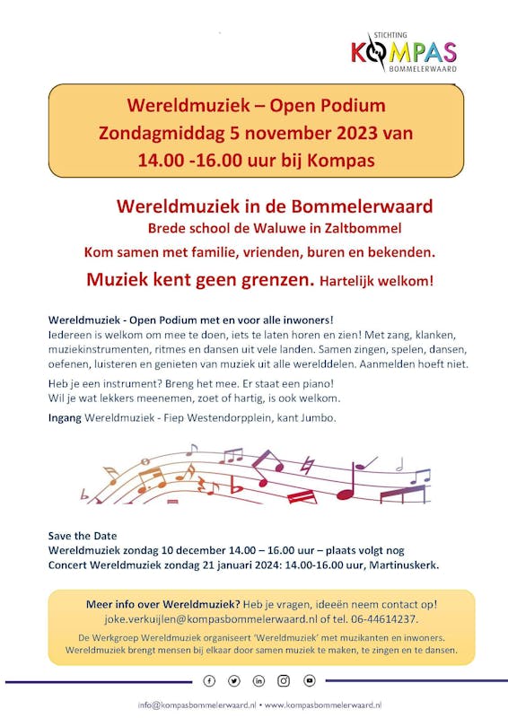 Meer info over Wereldmuziek? Heb je vragen, ideeën neem contact op!