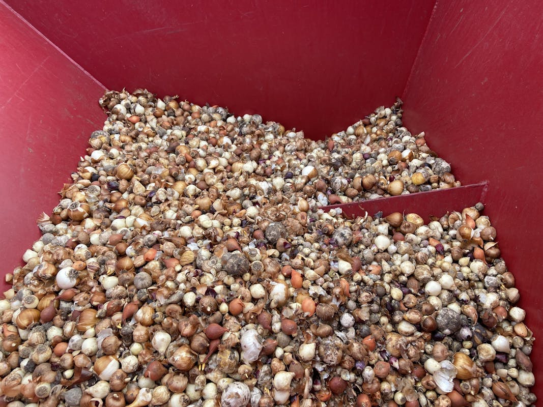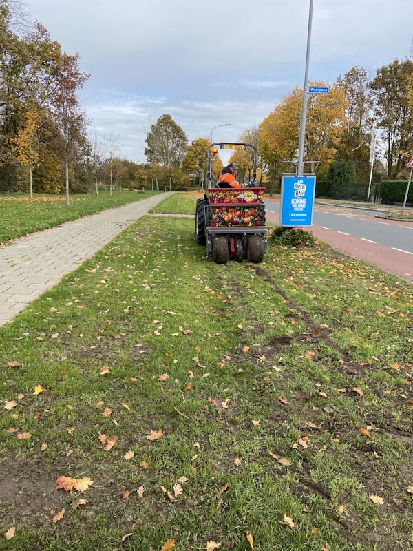 Daar gingen ze de grond in. Duizenden bollen zullen volgend jaar de Kloosterwiel opfleuren met allerlei kleuren !