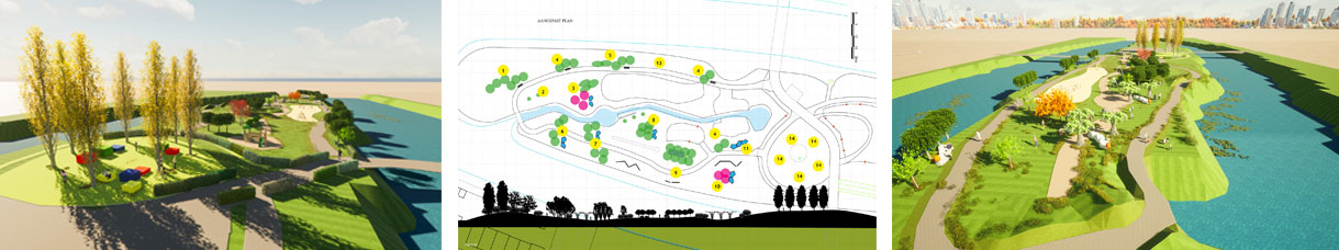 In onderstaand overzicht is te zien hoe we de beplanting over het eiland verdelen en welke soorten de ontwerper voor ons uitkoos.
